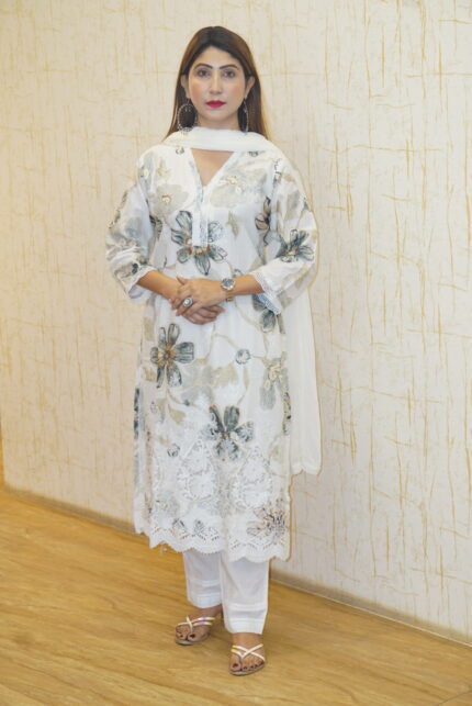 Light Grey Soft Rayon A-Line Suit with Digital Print & Dupatta