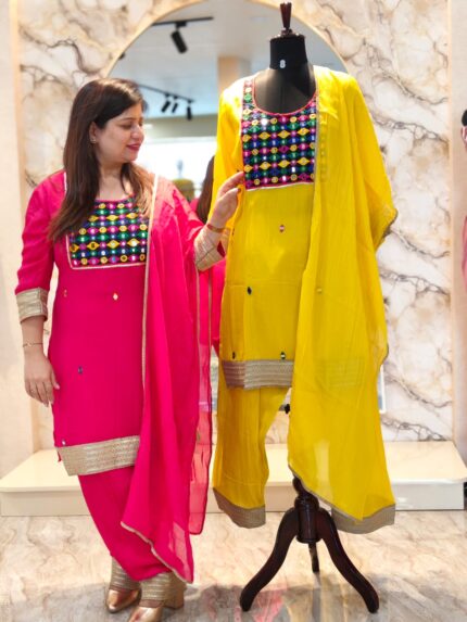 Vibrant Mirror Work 3 Pcs Soft Georget Kurta Set