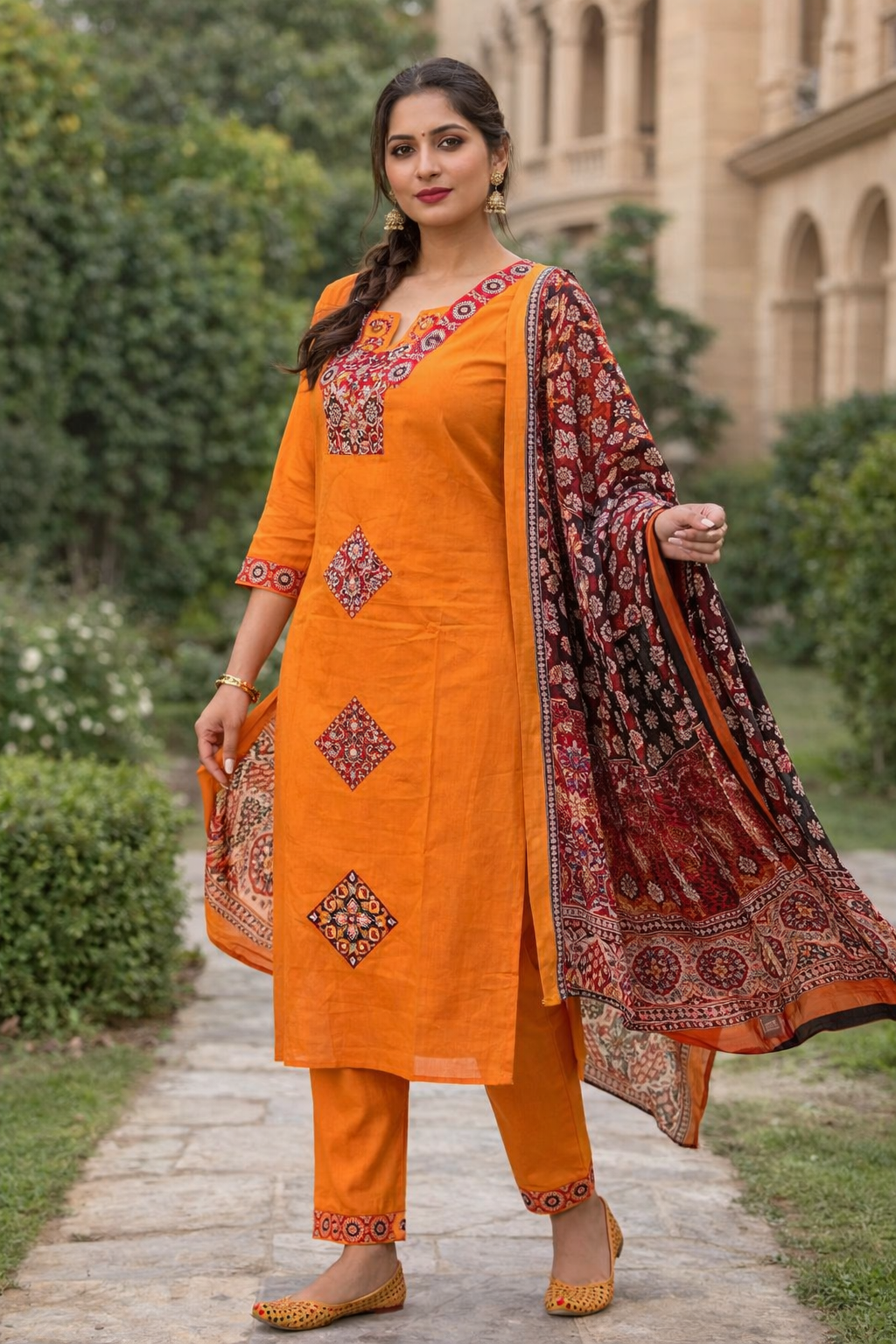 Home Indian wear Kurti/ suits 3 Pcs Cotton Suit with Printed Dupatta