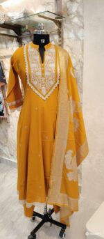 Be the first to review “Elegant 3pcs Mustard Colour Anarkali Suits Russian Silk” Cancel reply