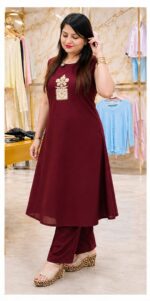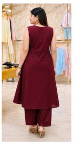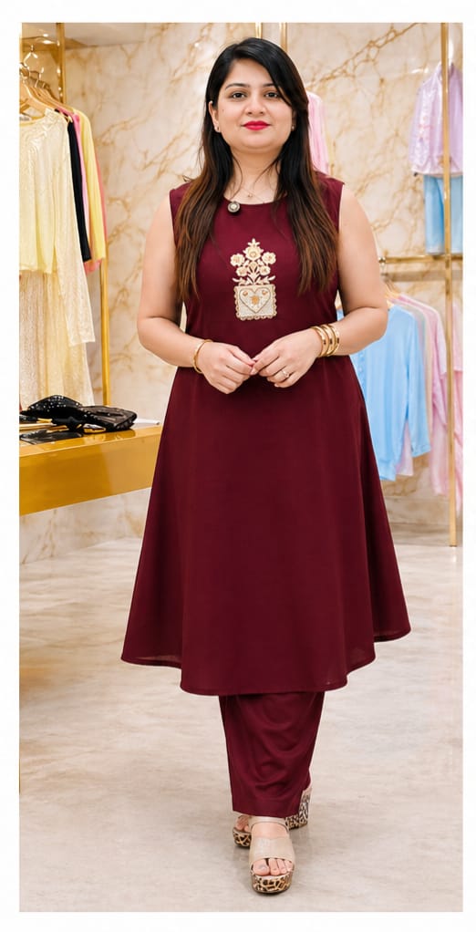 Add a touch of graceful charm to your wardrobe with this beautifully designed maroon kurta set. Tailored in a flattering A-line silhouette, this outfit offers the perfect balance of comfort and elegance, making it ideal for both everyday wear and special occasions.