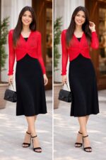 Be the first to review “Korean Style Stretchable Dress with Shrug_Black & red” Cancel reply