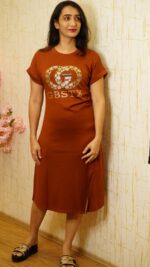 Elevate your style with this elegant midi dress, crafted in premium tinsel fabric and embellished with sparkling Swarovski stone work. Perfect for evening parties, cocktails, and special occasions.