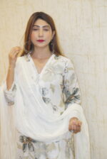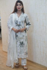Grace meets simplicity with this Off White Soft Khadi A-Line Suit, detailed with delicate lace at the border. A timeless choice for festive occasions, office wear, or casual elegance.