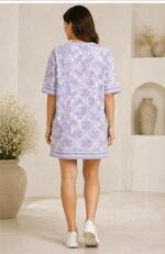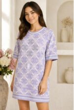 Soft, stylish, and effortlessly chic—this lavender T-shirt dress is the perfect blend of comfort and feminine charm. Designed in a relaxed, oversized silhouette, it features an all-over monogram-inspired print that adds a subtle yet trendy appeal.