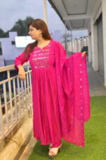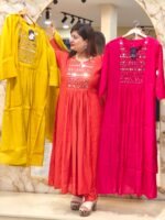 Be the first to review “Premium Mul Chanderi Original Mirror neck design A Line Dress_Hot Pink” Cancel reply