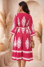 Be the first to review “Vibrant Fuchsia Pink and White Printed Knee-Length Dress” Cancel reply